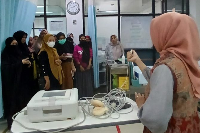 Selain pemeriksaan USG, para peserta juga mendapatkan edukasi tentang tanda bahaya kehamilan yang disampaikan oleh Dr. dr. Hj. Nur Asni, SpOG, spesialis obstetri dan ginekologi RSUD Daya. Edukasi ini bertujuan untuk meningkatkan pengetahuan ibu hamil dan keluarga mengenai gejala yang perlu diwaspadai demi keselamatan ibu dan bayi.